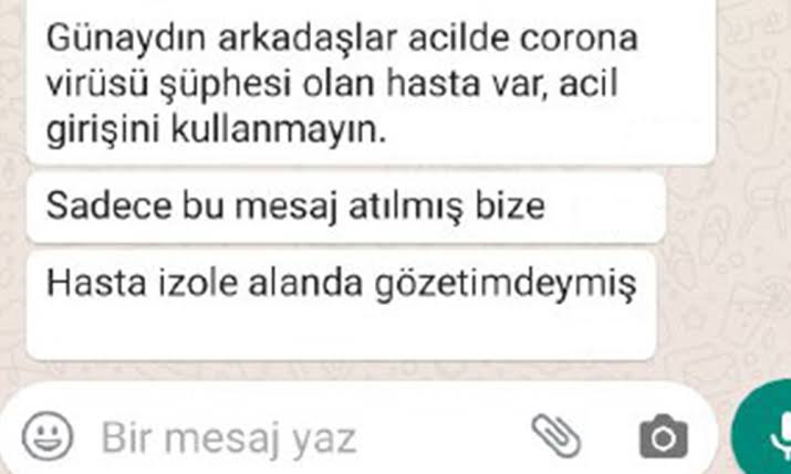 Çevrimiçi ![]() IF Ticaret Sayısı: (0) | Cevap: Corona tehlikesi büyüyor ( Çin'deki SARS benzeri Corona virüsü nedir ve nasıl bulaşır?) İSTANBUL’DA CORONA VİRÜSÜ SÜPHESİ İstanbul Büyükçekme’de bulunan Mimar Sinan Devlet Hastanesi’nde yabancı uyruklu bir hasta nedeniyle acil servis kapatıldı. Tüm personele maske dağıtılırken, konuyla ilgili açıklama yapılacağı öğrenildi. Büyükçekmece Mimar Sinan Devlet Hastanesi’ne sabah saatlerinde gelen yabancı uyruklu bir kadın grip olduğunu belirtti. Bunun üzerine hastanede önlem alındı. Kadının tedavi altına alındığı “kırmızı alan” kapatıldı. Acil serviste çalışanlara maske dağıtıldı. Doktor ve hemşirelerin ortak Whatapp gurubuna “Acilde Corona virüsü şüphesi olan hasta var acil girişini kullanmayın” mesajı atıldı. parlamentohaber ** Haber dogru mu bilmiyorum Son gelişmeleri cok merak ediyorum Dışarıyada adım atılacak gibi degil Hele ist.... Ürkütücü |